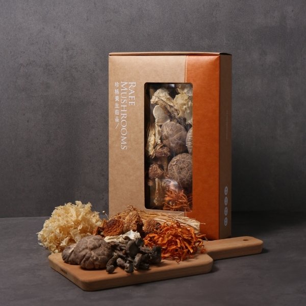 以六款珍稀乾燥食用菇匯集而成的高雅禮盒,將自然的清香、厚實的風味與健康概念凝聚於一盒之中。透過低溫乾燥技術保留菇類的營養精華,並展現乾燥後獨有的層層香氣。無論自用品味,或作為贈禮,都能體現高度品味與貼心心意。